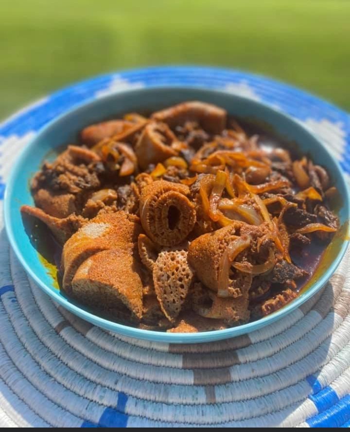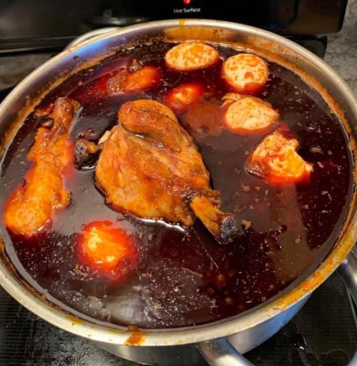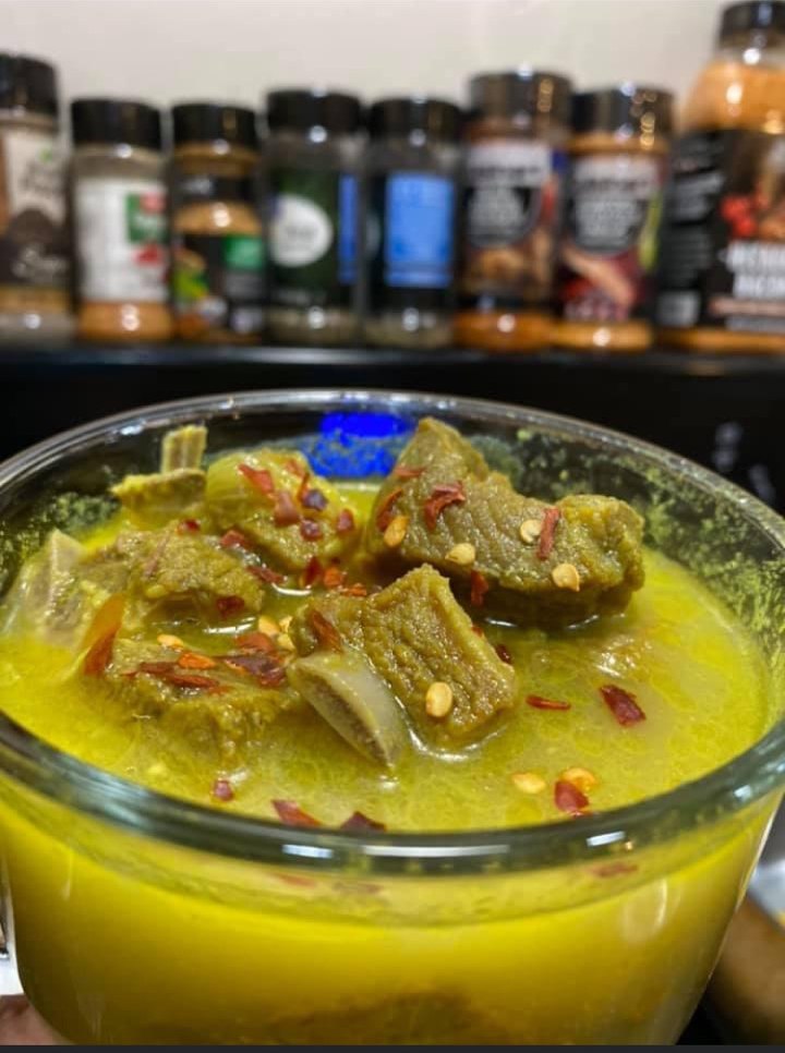 Roda linsgrytor nedsankta i kryddad rod parpikasas...